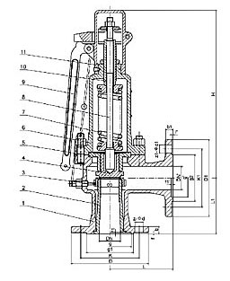 A61H/Y60、A61H/Y-320型彈簧微啟式空壓機安全閥適用于工作溫度≤200℃的空氣、氨、石油氣等介質的設備和管路上,A61Y60P、A61Y-320P型適用于工作溫度≤200℃含腐蝕性的氣體或液體的的設備和管路上,作為超壓保護裝置。 主要外型尺寸和連接尺寸